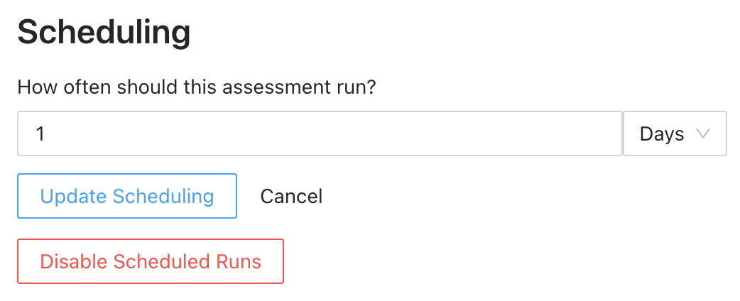 You can edit the frequency at which your assessment runs, or disable scheduled runs altogether in this section.