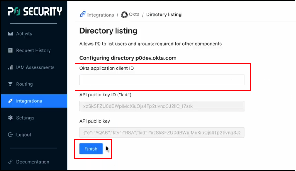 Connect the Okta Client ID with P0 to complete the integration: