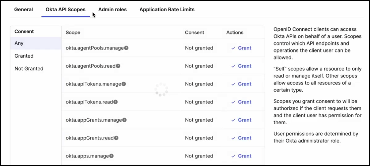 1. Click the **Okta API Scopes** tab.