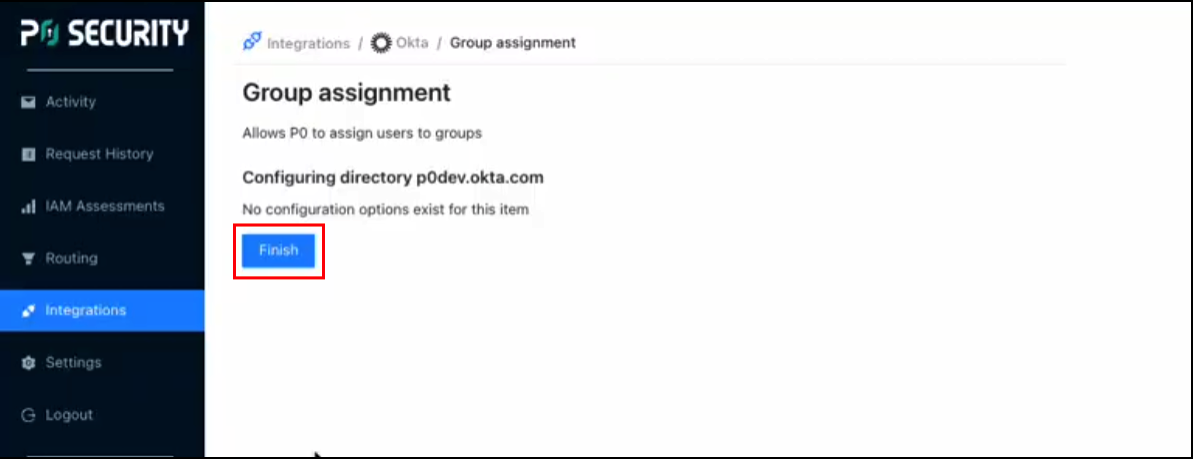 1. From the [p0.app](https://p0.app) site, navigate to **Integrations**, then select **Okta**.