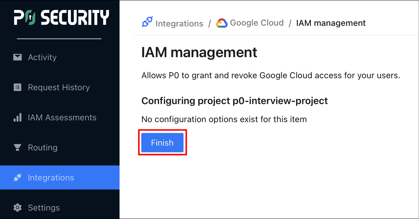 2. Go to [p0.app](https://p0.app/) in your browser, navigate to **Integrations**, and select **Google Cloud**.