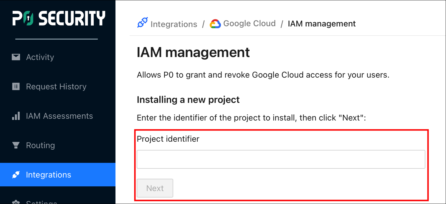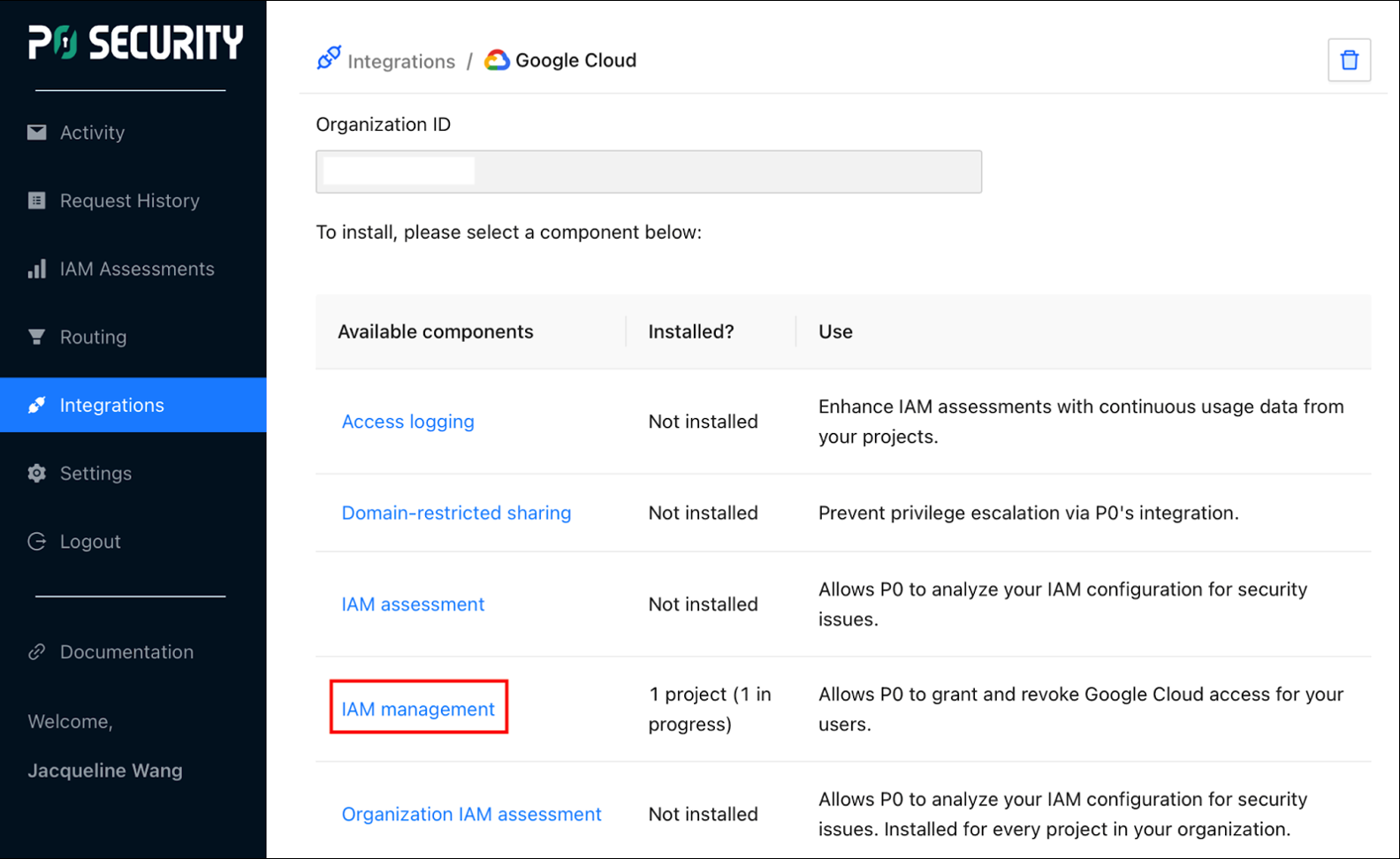The steps are similar for other components except IAM management. You need to install cloud run based[ IAM management security perimeter component](https://docs.p0.dev/integrations/resource-integrations/google-cloud/security-perimeter) before installing IAM management. Contact P0 support to skip installing security perimeter.