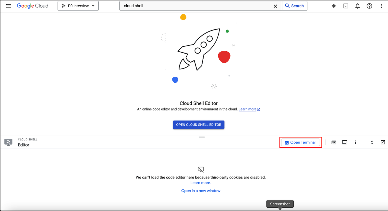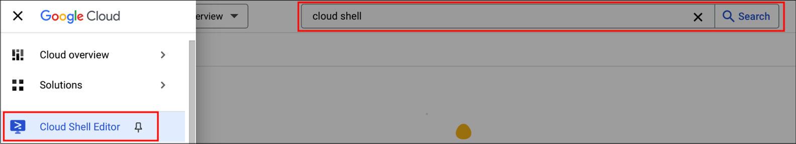 2. Open **Cloud Shell Editor** from the left menu, or use the search bar.