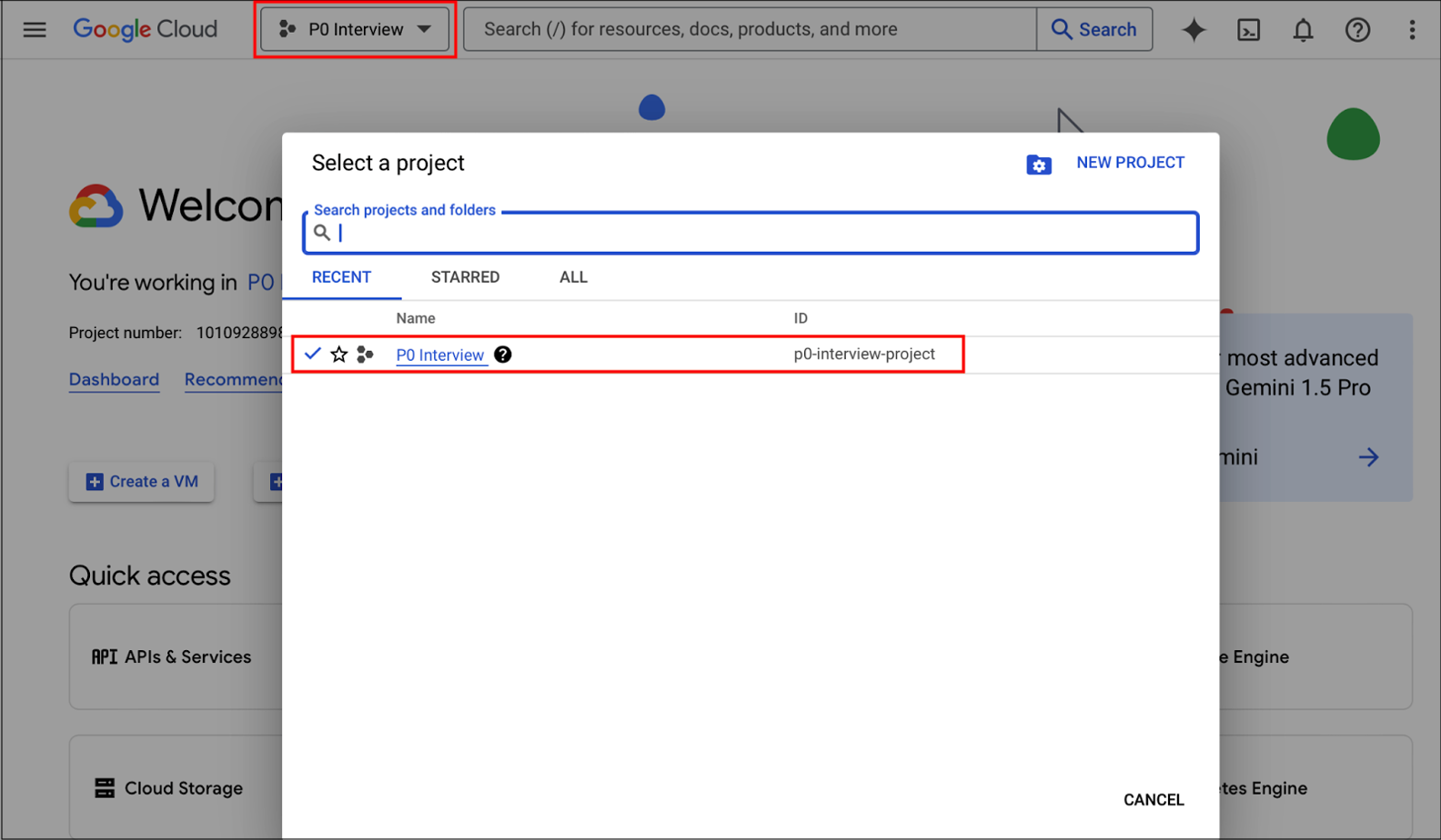 1. Go to your [GCP account](https://console.cloud.google.com/) and select the project you want to provision.