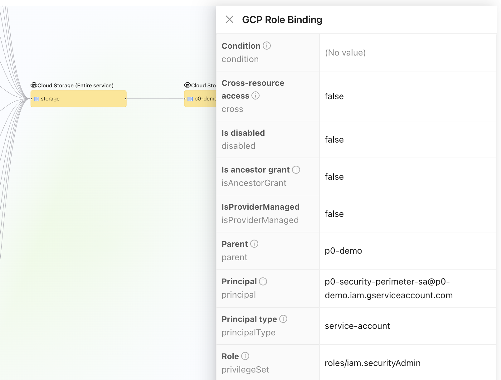 You can get more information on any node in your access graph by clicking on it, which will open a view of all that graph node's properties.