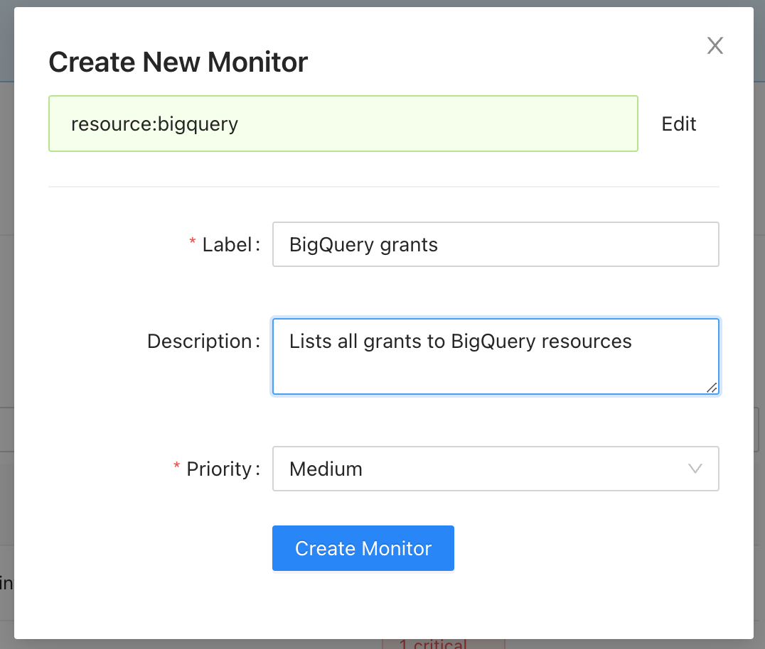 * Follow the prompts to add a title, description, and severity for your monitor