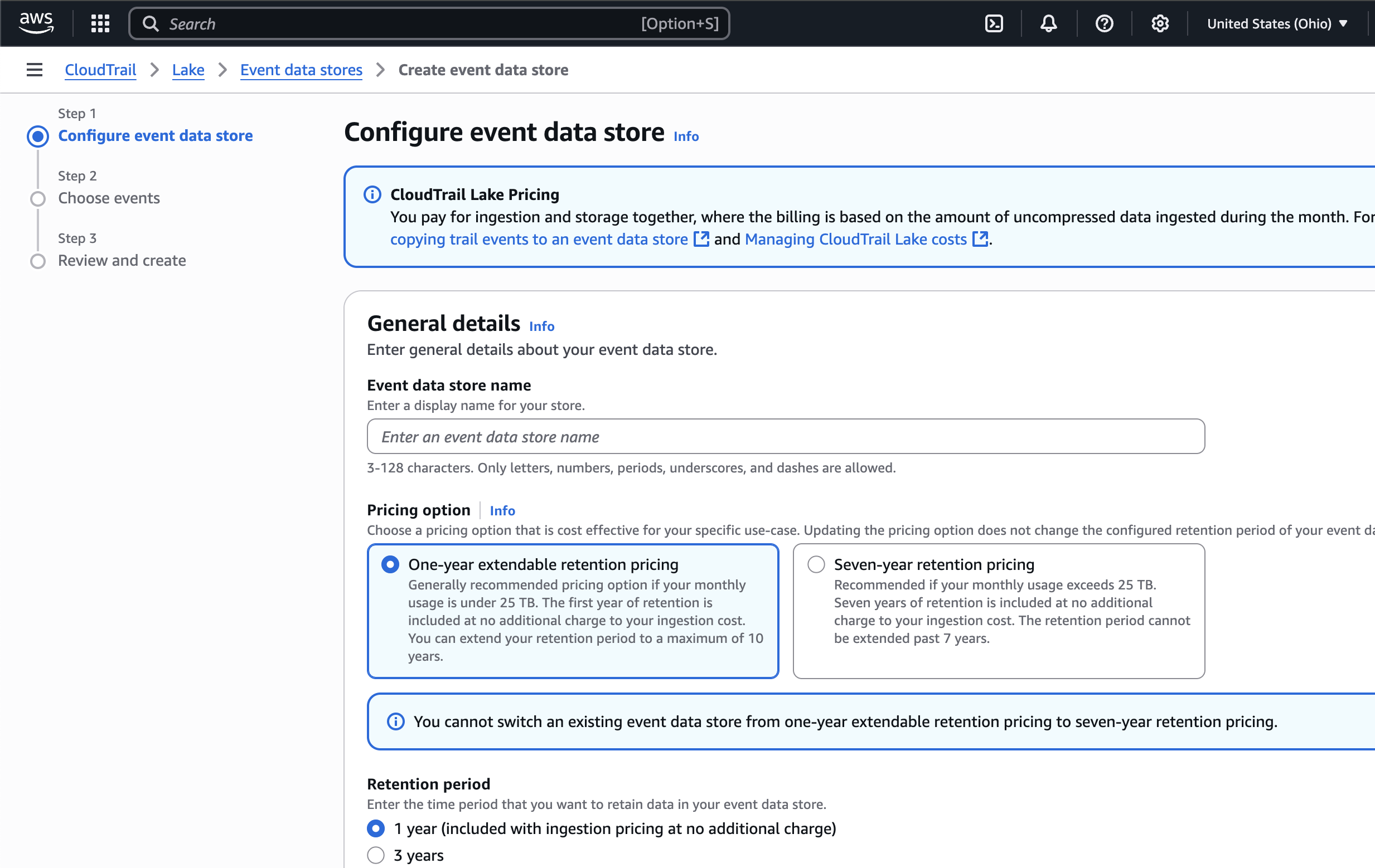 ### **Step 1: Create a CloudTrail and CloudLake Data Store**